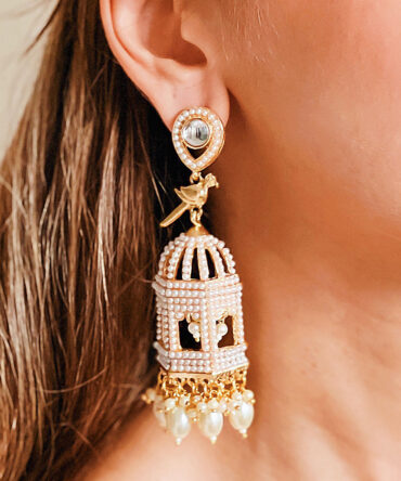 Stylish Off-White & Gold Pearl Window Jhumkis